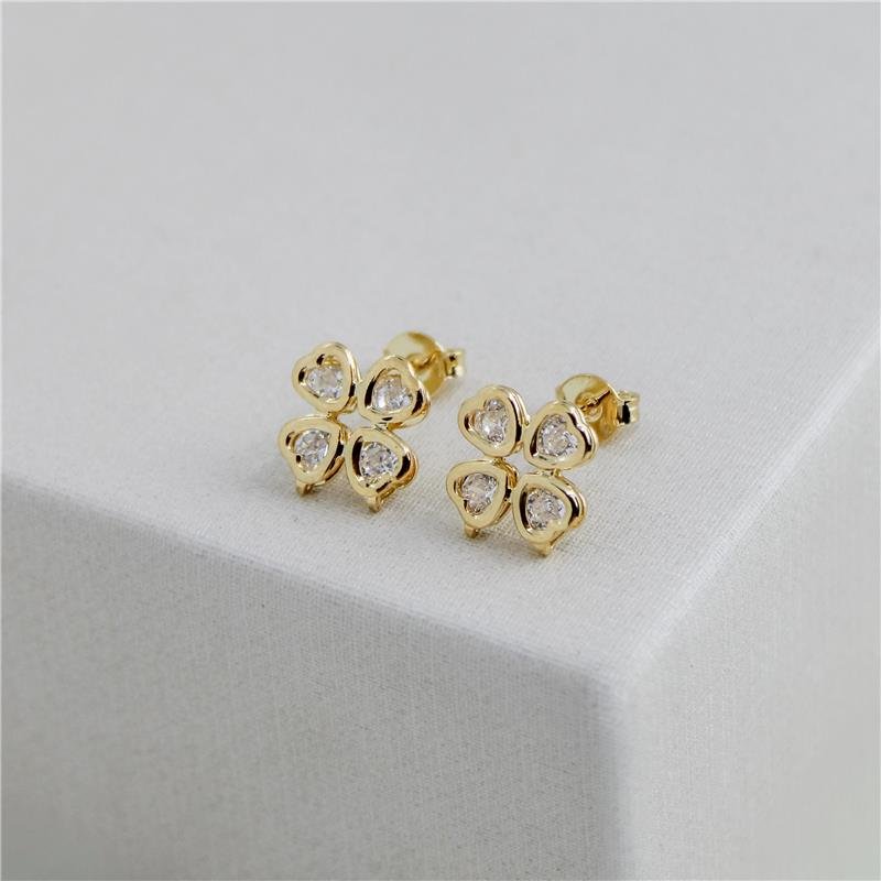 Brinco fixo 4 corações duplos com zircônias. Produto no bruto.Produtos no bruto não passaram pelo processo de galvanoplastia, o banho. Falta em sua superfície a camada de metais preciosos como ouro, prata e ródio.