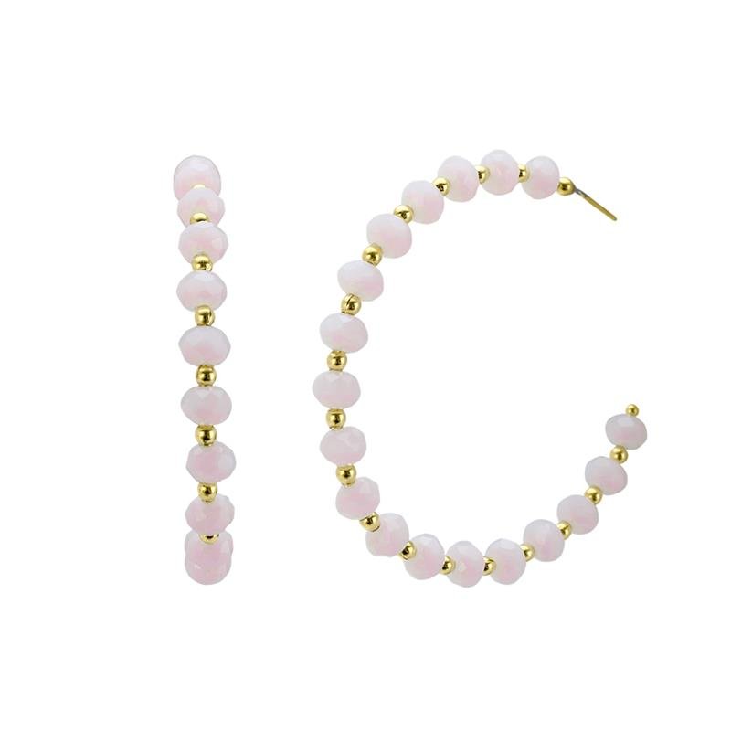 Brinco argola de miçangas verde claro. Produto no bruto.