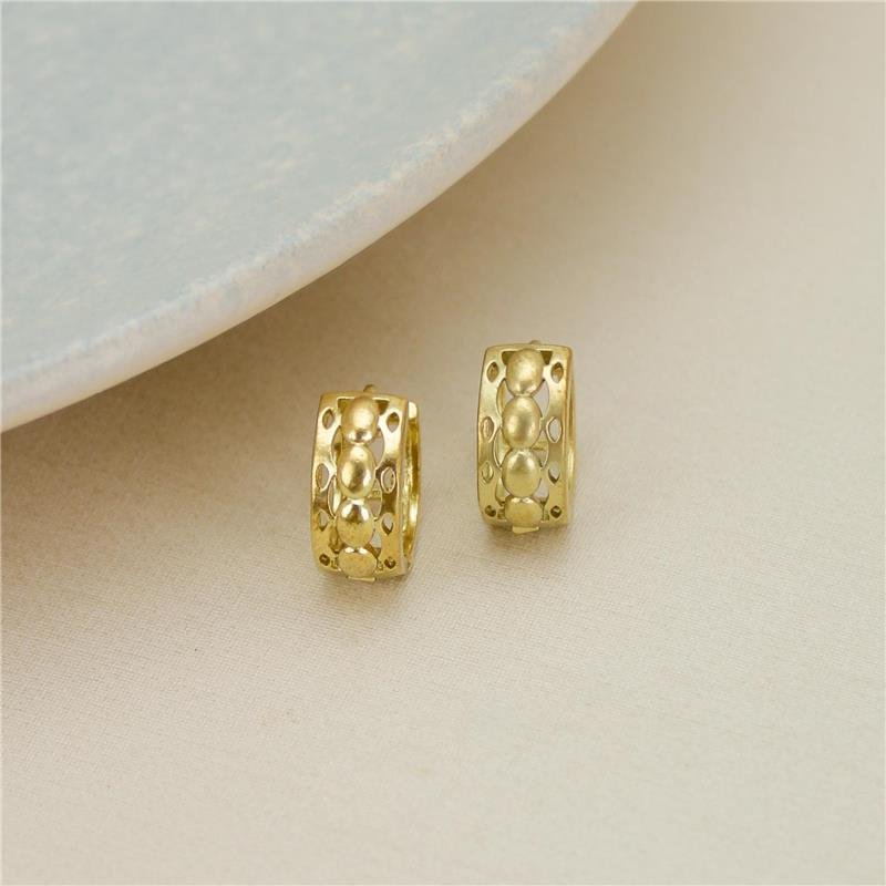 Brinco argolinha click com detalhes vazados. Produto no bruto.Produtos no bruto não passaram pelo processo de galvanoplastia, o banho. Falta em sua superfície as camadas de metais preciosos como ouro, prata ou ródio.