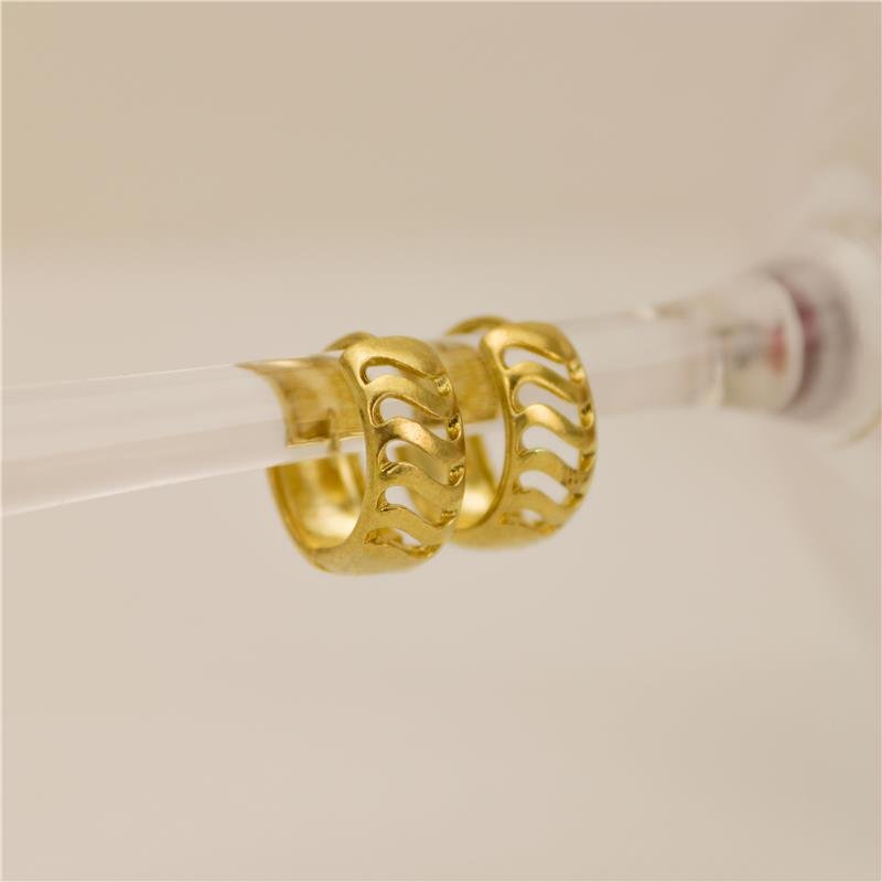 Brinco argolinha click vazada com listras onduladas. Produto no bruto.Produtos no bruto não passaram pelo processo de galvanoplastia, o banho. Falta em sua superfície as camadas de metais preciosos como ouro, prata ou ródio.