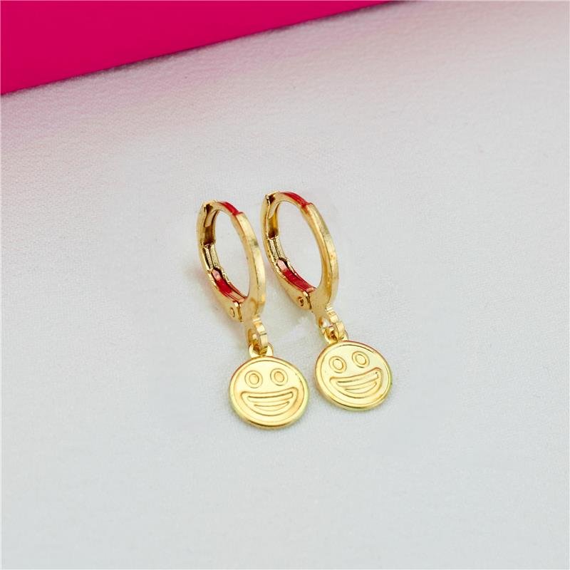 Brinco de argolinha com medalha smile. Produto no bruto.Produtos no bruto não passaram pelo processo de galvanoplastia, o banho. Falta em sua superfície as camadas de metais preciosos como ouro, prata ou ródio.