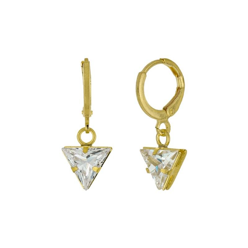 Brinco de argolinha com triângulo de zircônia 8mm na cor cristal. Produto no bruto.Produtos no bruto não passaram pelo processo de galvanoplastia, o banho. Falta em sua superfície as camadas de metais preciosos como ouro, prata ou ródio.