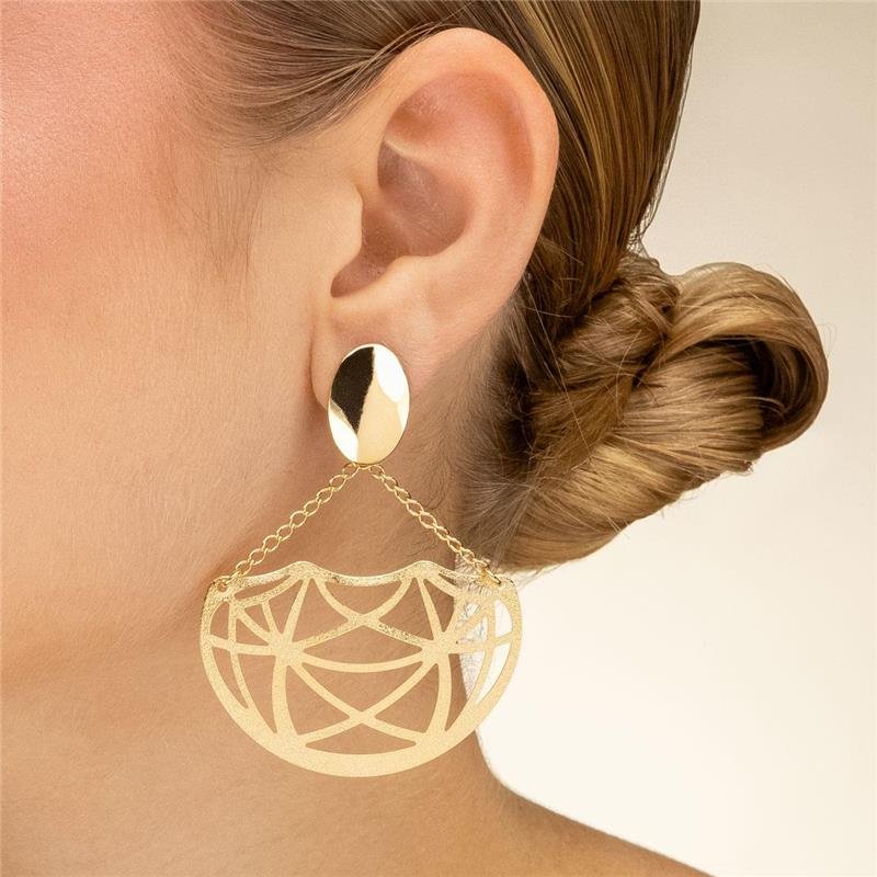 Brinco base oval com corrente grumet e acessório vazado e craquelado. Produto no bruto.Produtos no bruto não passaram pelo processo de galvanoplastia, o famoso "banho". Falta em sua superfície a camada de metais preciosos como ouro, prata e ródio.