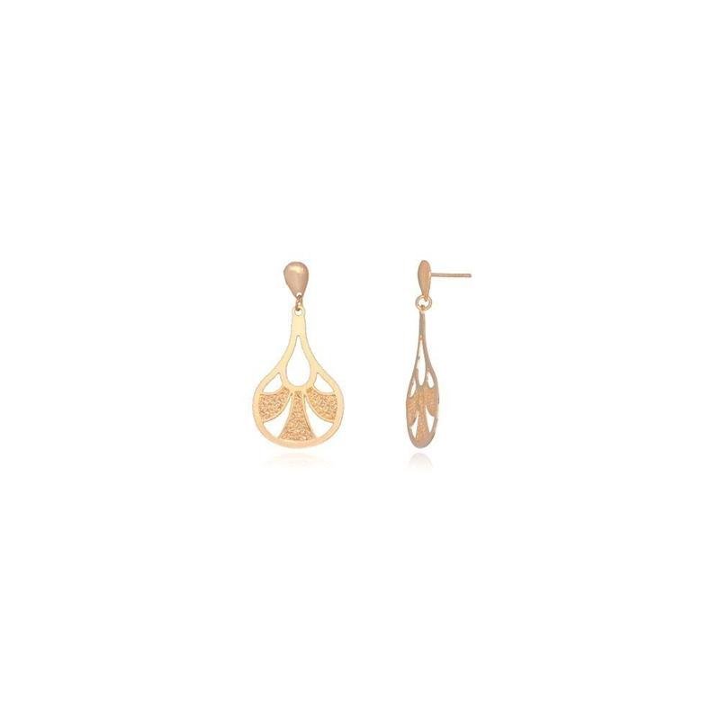 Brinco articulado base gota lisa com gota vazada e estampada. Produto no bruto.Produtos no bruto não passaram pelo processo de galvanoplastia, o banho. Falta em sua superfície a camada de metais preciosos como ouro, prata e ródio.