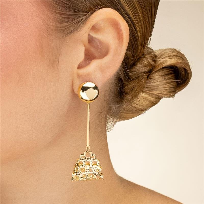 Brinco articulado base redonda com palito e acessório trabalhado de acabamento dobrado e texturizado. Produto no bruto.Produtos no bruto não passaram pelo processo de galvanoplastia, o banho. Falta em sua superfície as camadas de metais preciosos como ouro, prata ou ródio.