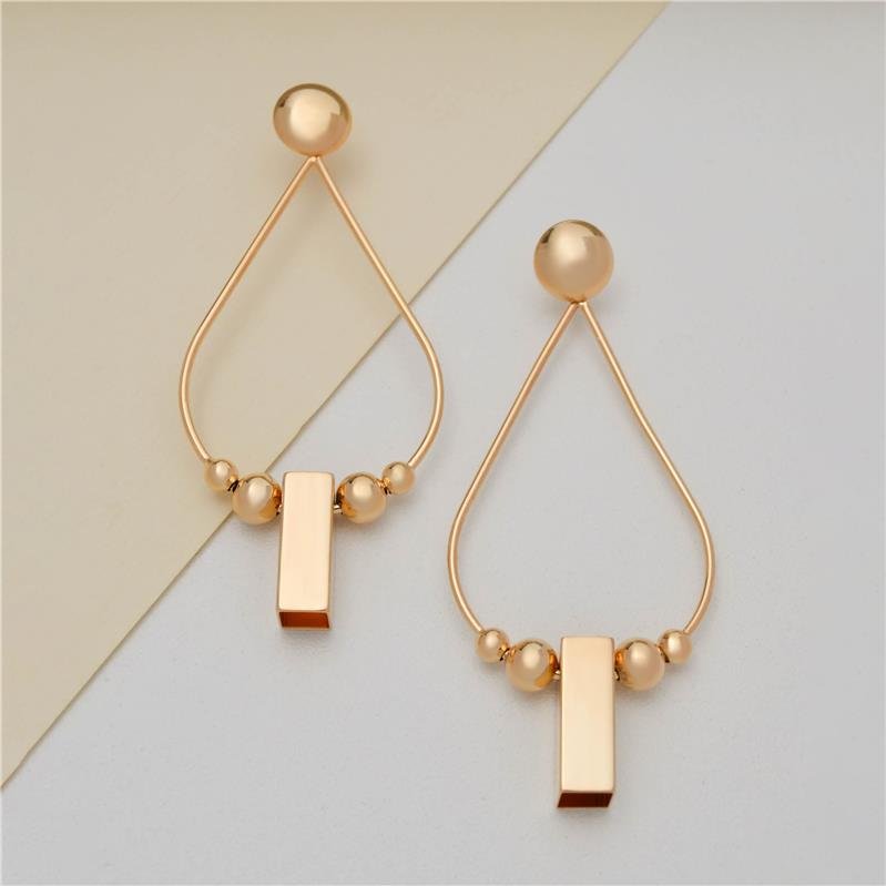 Brinco articulado base redonda, fio no formato de gota com bolas e canutilho. Produto no bruto.Produtos no bruto não passaram pelo processo de galvanoplastia, o banho. Falta em sua superfície as camadas de metais preciosos como ouro, prata ou ródio.