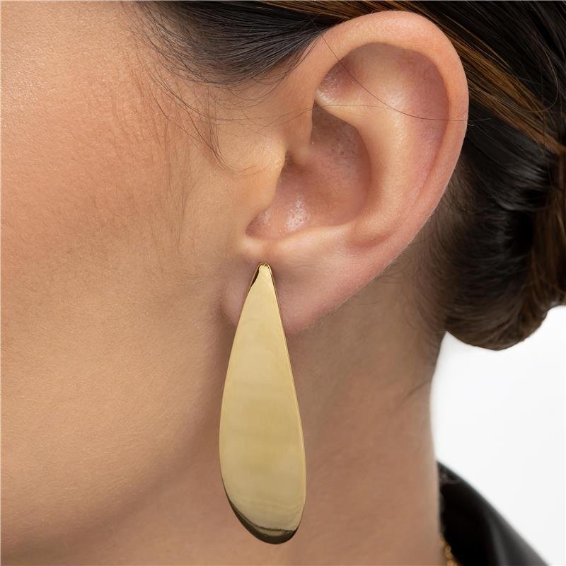Brinco grande gota lisa curva. Produto no bruto.Produtos no bruto não passaram pelo processo de galvanoplastia, o banho. Falta em sua superfície a camada de metais preciosos como ouro, prata e ródio.