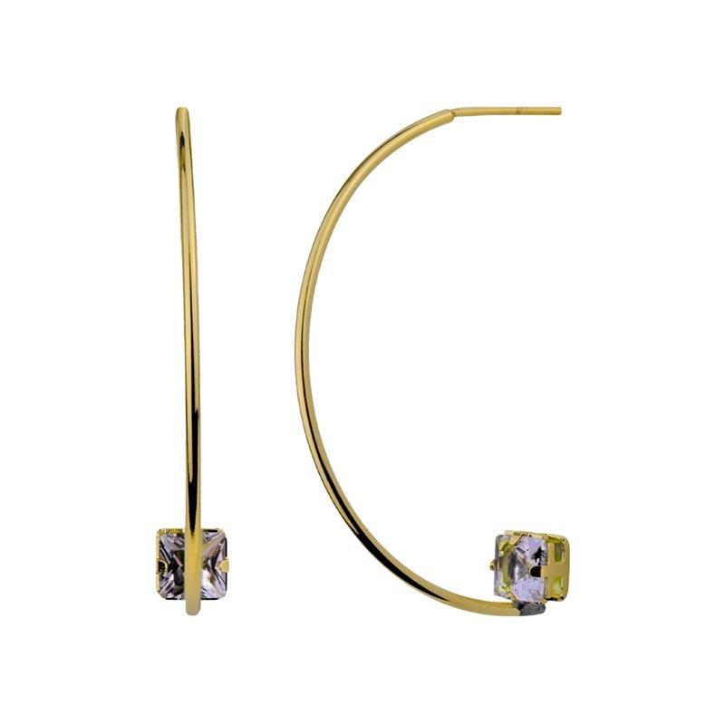 Brinco meia argola com zircônia carré 5mm na ponta. Produto no bruto.Produtos no bruto não passaram pelo processo de galvanoplastia, o banho. Falta em sua superfície as camadas de metais preciosos como ouro, prata ou ródio.