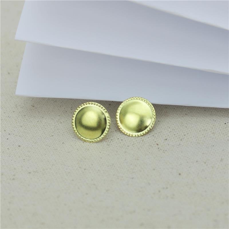 Brinco fixo redondo com acabamento na borda de bolinhas. Produto no bruto.Produtos no bruto não passaram pelo processo de galvanoplastia, o banho. Falta em sua superfície a camada de metais preciosos como ouro, prata e ródio.