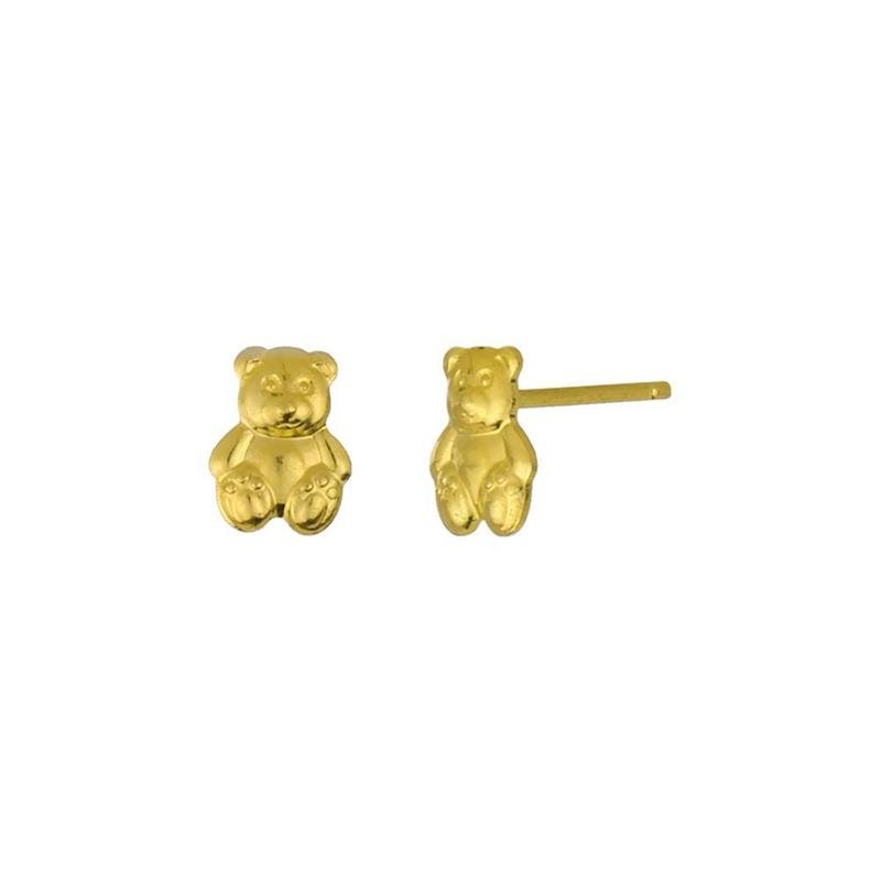 Brinco fixo de ursinho. Produto no bruto.Produtos no bruto não passaram pelo processo de galvanoplastia, o banho. Falta em sua superfície as camadas de metais preciosos como ouro, prata ou ródio.
