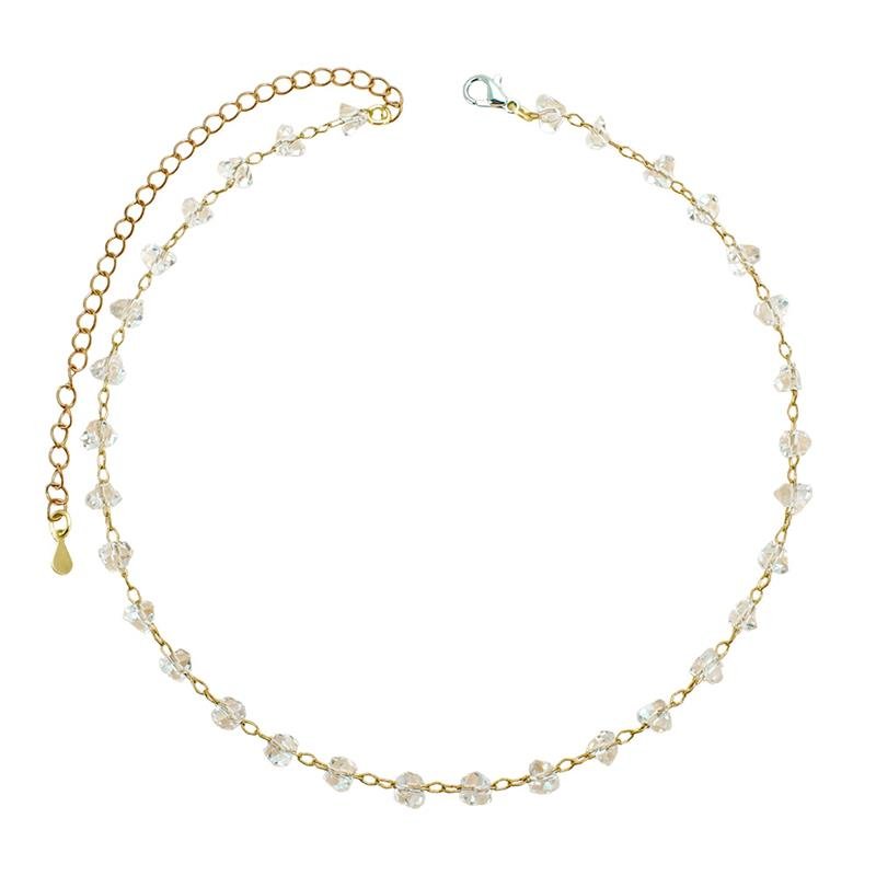 Colar choker corrente americana com cristais de vidro. Produto no bruto.Produtos no bruto não passaram pelo processo de galvanoplastia, o banho. Falta em sua superfície as camadas de metais preciosos como ouro, prata ou ródio.