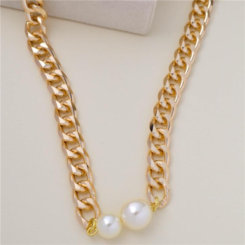 Colar choker corrente grumet 9mm com pérolas 10mm e 12mm. Produto no bruto.Produtos no bruto não passaram pelo processo de galvanoplastia, o banho. Falta em sua superfície a camada de metais preciosos como ouro, prata e ródio.