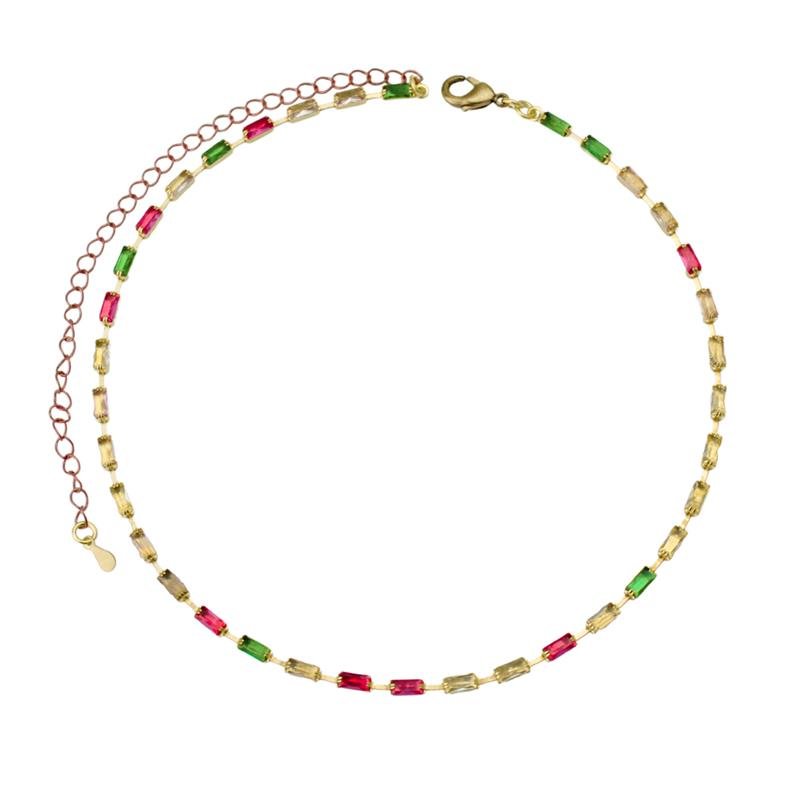 Colar choker corrente riviera de zircônias baguete 3mm multicolor. Produto no bruto.Produtos no bruto não passaram pelo processo de galvanoplastia, o banho. Falta em sua superfície as camadas de metais preciosos como ouro, prata ou ródio.