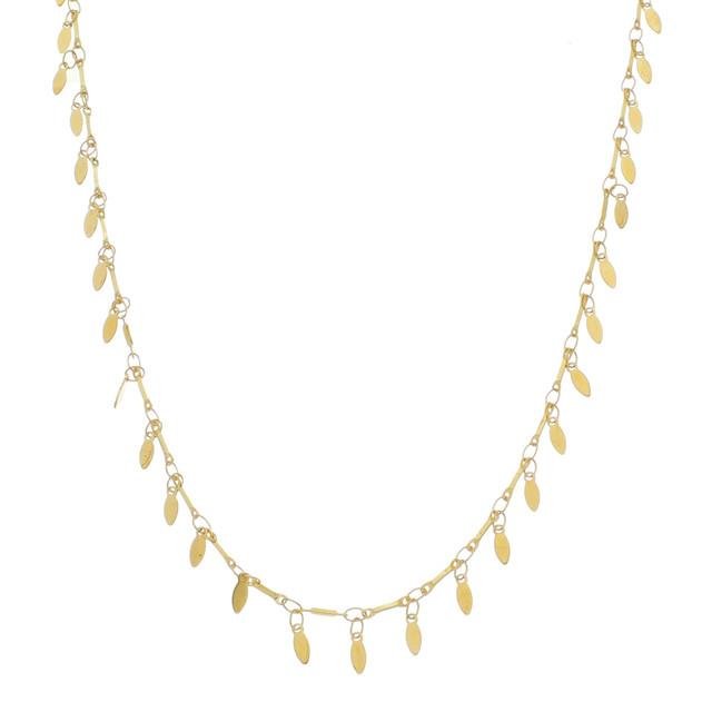 Colar 60cm corrente de palitos com pingentes em formato de navete. Produto no bruto.Produtos no bruto não passaram pelo processo de galvanoplastia, o banho. Falta em sua superfície a camada de metais preciosos como ouro, prata e ródio.