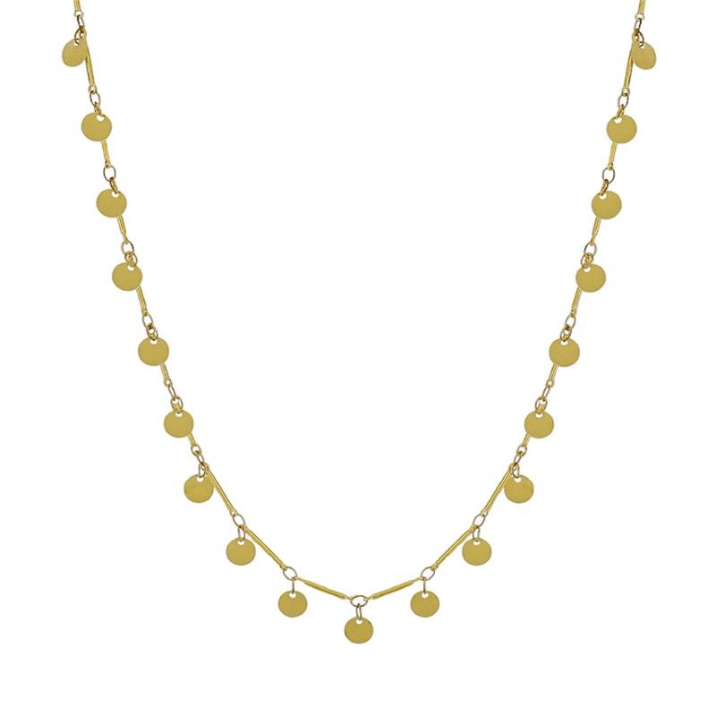 Colar 60cm corrente fio palito com chapinhas redondas 6mm. Produto no bruto. Produtos no bruto não passaram pelo processo de galvanoplastia, o banho. Falta em sua superfície as camadas de metais preciosos como ouro, prata ou ródio. Dados técnicos: Corrente: 60cm + 5cm extensor Material: Metal Peso: 7,8g. NOSSOS PRODUTOS SÃO VENDIDOS EM PACOTES DE 05 UNIDADES. PREÇO INFORMADO É REFERENTE AO VALOR UNITÁRIO/PAR.