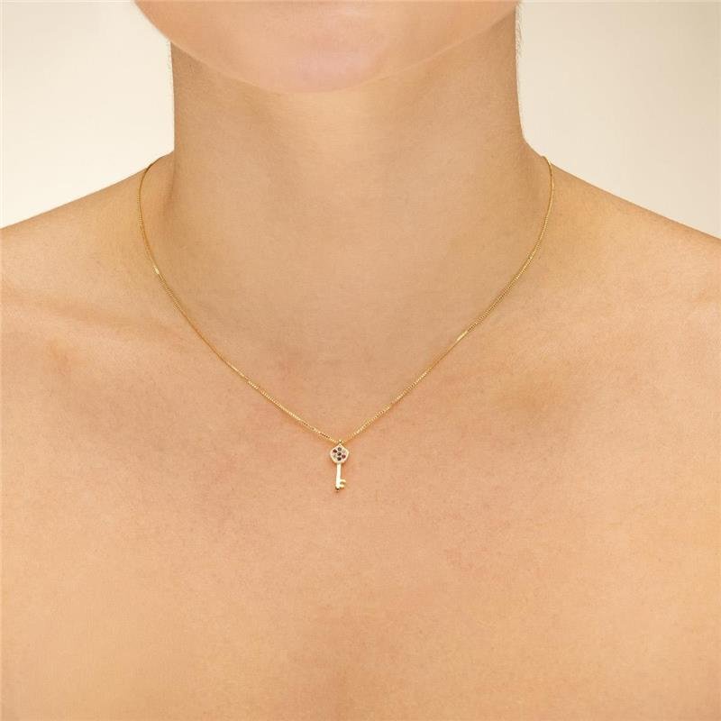 Colar 40cm corrente veneziana com chave cravejada zircônias multicolor. Produto no bruto.Produtos no bruto não passaram pelo processo de galvanoplastia, o banho. Falta em sua superfície a camada de metais preciosos como ouro, prata e ródio.