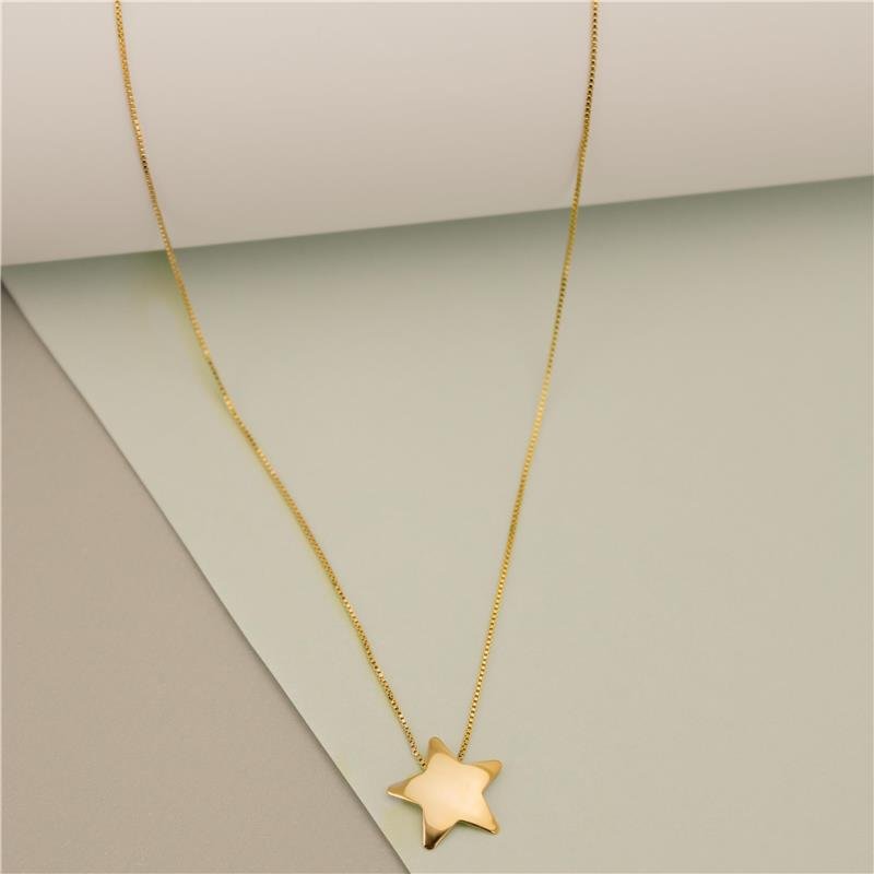 Colar 45cm corrente veneziana com estrela abaulada. Produto no bruto.Produtos no bruto não passaram pelo processo de galvanoplastia, o banho. Falta em sua superfície as camadas de metais preciosos como ouro, prata ou ródio.
