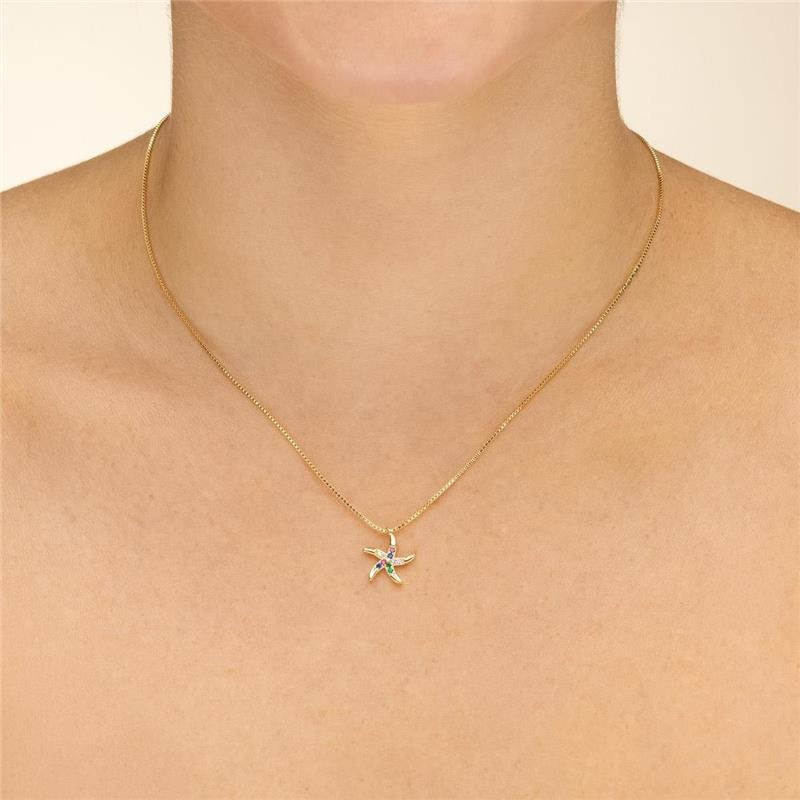 Colar 40cm corrente veneziana com estrela do mar cravejada de micro zircônias multicolor. Produto no bruto.Produtos no bruto não passaram pelo processo de galvanoplastia, o banho. Falta em sua superfície a camada de metais preciosos como ouro, prata e ródio.