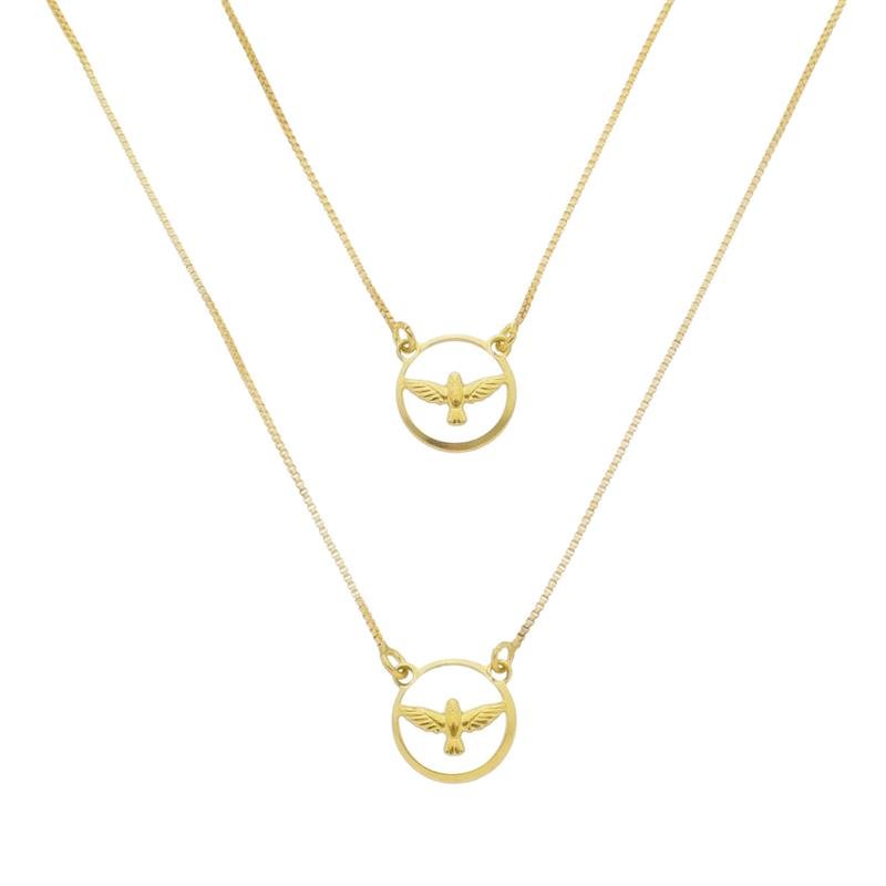 Escapulário 60cm corrente veneziana com medalhas vazadas Espírito Santo. Produto no bruto.Produtos no bruto não passaram pelo processo de galvanoplastia, o banho. Falta em sua superfície a camada de metais preciosos como ouro, prata e ródio.