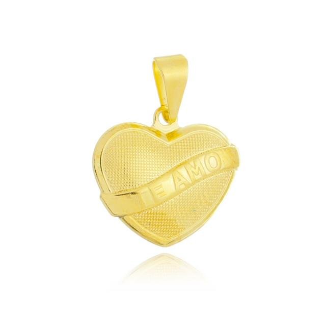 Pingente coração reticulado com faixa Te amo . Produto no bruto Produtos no bruto não passaram pelo processo de galvanoplastia, o banho. Falta em sua superfície as camadas de metais preciosos como ouro, prata ou ródio. Dados técnicos: Medida: 2,3 cm Material: Metal Peso: 1,2 g