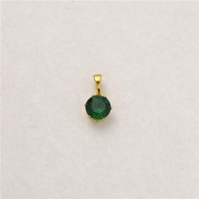 Pingente zircônia redonda na cor esmeralda. Produto no bruto.Produtos no bruto não passaram pelo processo de galvanoplastia, o banho. Falta em sua superfície a camada de metais preciosos como ouro, prata e ródio.