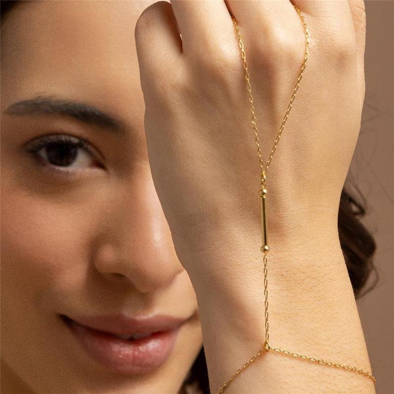 Pulseira de mão corrente cartier com canutilho e duas esferas. Produto no bruto.Produtos no bruto não passaram pelo processo de galvanoplastia, o banho. Falta em sua superfície a camada de metais preciosos como ouro, prata e ródio.