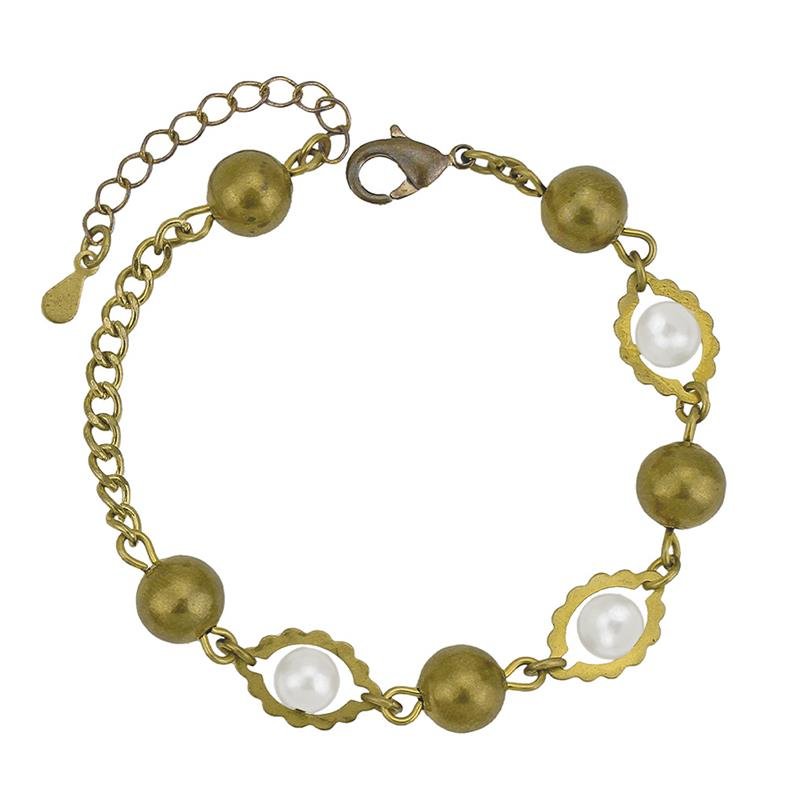 Pulseira de bolas e pérolas envoltas no metal. Produto no bruto. Produtos no bruto não passaram pelo processo de galvanoplastia, o banho. Falta em sua superfície as camadas de metais preciosos como ouro, prata ou ródio. Dados técnicos: Corrente: 16,5cm + 4cm extensor Material: Metal e Pérola Sintética Peso: 4,7g. NOSSOS PRODUTOS SÃO VENDIDOS EM PACOTES DE 05 UNIDADES. PREÇO INFORMADO É REFERENTE AO VALOR UNITÁRIO/PAR.