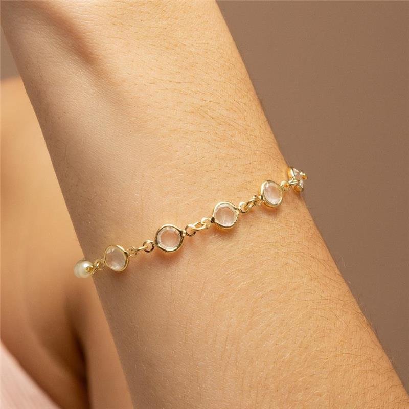 Pulseira cristais de vidro 6mm com pérolas 4mm. Produto no bruto.Produtos no bruto não passaram pelo processo de galvanoplastia, o banho. Falta em sua superfície a camada de metais preciosos como ouro, prata e ródio.