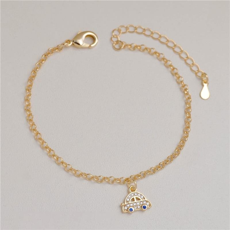 Pulseira corrente elo português com carro cravejado de zircônias cristal e azul. Produto no bruto.Produtos no bruto não passaram pelo processo de galvanoplastia, o banho. Falta em sua superfície a camada de metais preciosos como ouro, prata e ródio.