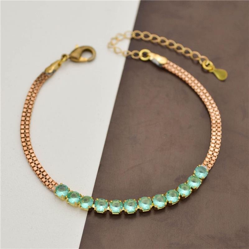 Pulseira corrente veneziana dupla 3mm com corrente de zircônias 4mm na cor turmalina. Produto no bruto.Produtos no bruto não passaram pelo processo de galvanoplastia, o banho. Falta em sua superfície a camada de metais preciosos como ouro, prata e ródio.